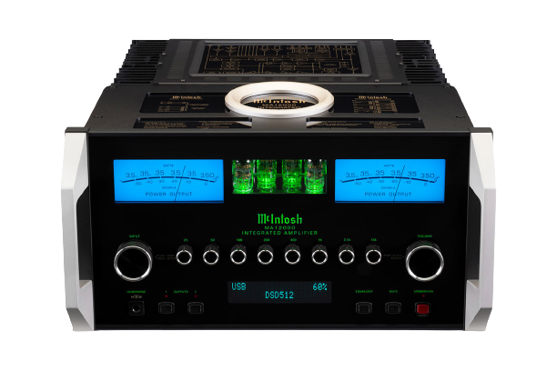 McIntosh MA12000 Integrated AmplifierThe vacuum tubes for the preamplifier section are located between the watt meters. Also shown are the knobs for the eight-band analog tone control.The MA12000 is a hybrid design with the preamplifier section powered by (4) 12AX7A vacuum tubes (2 tubes per audio channel), while the 350 Watt power amplifier section employs a solid state design. Our Autoformer™ technology guarantees your speakers will always be capable of receiving that full 350 Watts whether they have 2, 4 or 8 Ohm impedance.